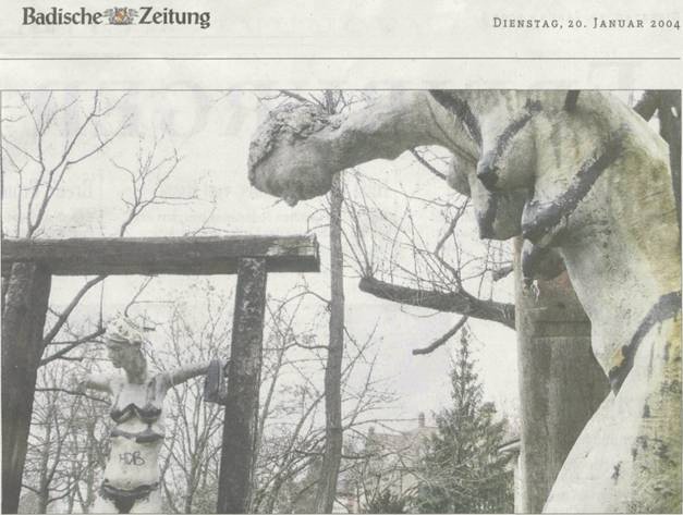 für Kunst zu nutzen und das finde sinnvollerweise im Wechsel statt. Auch Achim Könneke, der Leiter des Kulturamtes, verteidigt den Abbau. Während eines Ortstermins 2002 mit Anwohnern, Künstlern und Vertretern der Stadt sei vereinbart worden, die Gruppe zu entfernen. „Es geht primär darum, die Grünfläche zu nutzen, um dort im Wechsel Skulpturen von zeitgenössischen Künstlern zu präsentieren." Diese sollen jeweils für einen Zeitraum von etwa zwei Jahren ausgestellt werden. Eine handvoll Freiburger Künstler werde demnächst angefragt, Konzepte für die Fläche zu entwickeln, die vom Sommer an wieder „bespielt werden" soll. Die Diskussion um die „anstößigen Arbeiten" sei nicht wirklich relevant für den Abbau, so Könnecke. Die Ausstellung verschiedener Skulpturen sei vielmehr der Versuch, trotz der „bescheidenen, lächerlichen Mittel" des Etats die Bildende Kunst zu fördern. |